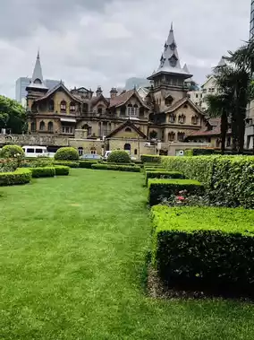 Mahler Villa combines Nordic Norwegian architectural style with British charm. Spires, colorful stained glass windows, and relief decorations—every detail is meticulously crafted. The main building’s roof is staggered in height, resembling castle towers in fairy tales, shining charmingly under the sunlight, as if tailored for princesses and princes.