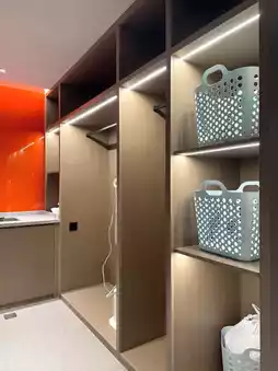The bathroom is well-equipped. The water temperature adjustment system has a screen to set the exact temperature, and the toilet flush is operated by a foot sensor instead of a button.