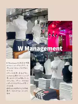 W Management is a famous Chinese fashion brand known for its model-like looks and distinctive store style. The staff is often handsome and beautiful, and the store offers a wide selection of fashionable items. Find styles perfect for casual, date, and business at this store. Prices range from ¥5,000 to ¥20,000, making it a great value for money.