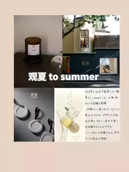 Founded in Beijing in 2018, Guanxia to Summer also has stores in Shanghai, Shenzhen, and Hangzhou. The store offers perfumes, aromatherapy, and body care products themed around Chinese scents, allowing customers to experience the fragrances in-store. The store's products are characterized by simple and sophisticated designs.