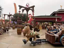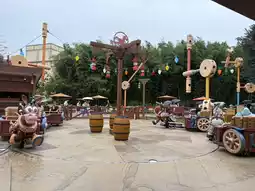 This ride had very short queues, like a 20-30 minute wait. It's a horse-drawn carriage that spins, but it's hilarious. It's so exciting, and it's perfect for kids. It's easy to play and fun to laugh at.
