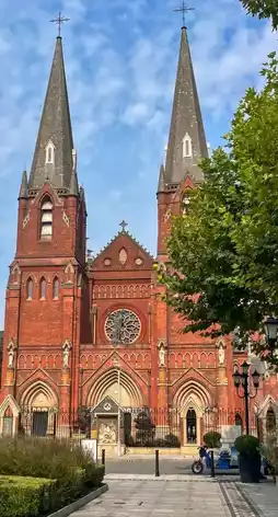 As the cathedral of the Catholic Diocese of Shanghai, St. Ignatius Cathedral in Xujiahui is one of the largest Gothic-style buildings in modern Chinese history. When completed in 1910, it was hailed as the "largest cathedral in the Far East" and is now a nationally protected cultural heritage site. Its architectural style combines French Gothic Revival features, with twin bell towers reaching 57 meters high and spires topped with crosses piercing the sky. The red brick exterior walls paired with granite trim exude solemn elegance. Inside, 64 Jinshan stone columns support the cruciform dome. The stained glass rose window imported from France in 1919 casts colorful light patterns under the sun. The carved altar and pipe organ music add to the sacred atmosphere. This site is not only a place of worship but also a historical witness to Shanghai’s multicultural integration, making it ideal for architecture lovers, history and culture explorers, and photography enthusiasts.
