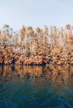 Secret dawn redwood forest on the water! The boardwalk reflects red, yellow, and green dawn redwoods on both sides