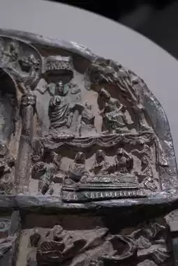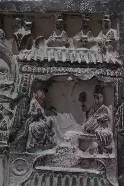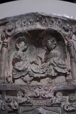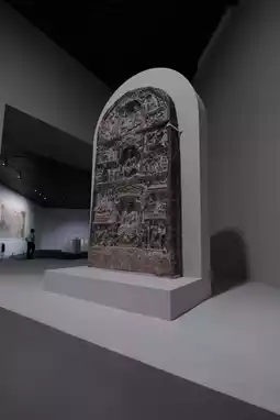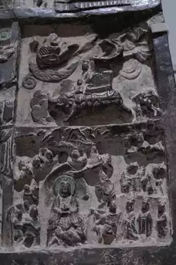 The Buddha Story Stele is a stone carving artwork in the Maijishan Grottoes, featuring 14 key life stories of Buddha Shakyamuni from birth to nirvana, carved in panels in a style similar to a comic strip. These include "Entering the Womb on an Elephant"—depicting Shakyamuni transforming into a white elephant and entering the womb of his mother, Queen Maya; and "Parinirvana under the Sala Trees"—showing the scene of Shakyamuni’s passing (nirvana) under the twin sala trees.