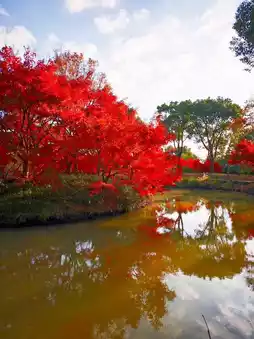 💖 The entire Autumn Scenery Garden is filled with red maples in various shades: classic maple red, brick red, dark red, sunset red, vermilion, scarlet... layered and intertwined. The afternoon sunlight at two or three o’clock filters through the maple leaves, making each leaf glow like jade, and the light casts beautiful shadows on the ground. The maple trees by the lake reflect on the water, dyeing the surface a rosy red. Such a beautiful scene is intoxicating and makes the trip worthwhile.