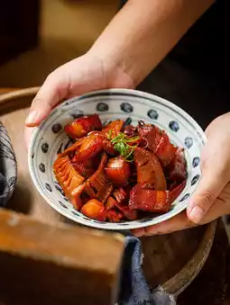 A classic Chinese dish made with tender pork belly, slowly simmered in a sauce made from sweet soy sauce, Chinese rice wine, and sugar, resulting in a rich, well-rounded flavor and the aroma of Chinese spices. Some recipes also include quail eggs and tofu.