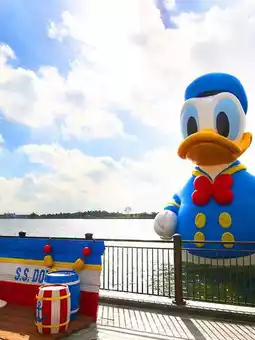 ✨️ In Disney Town Street there is a very large big duck, located across from Starbucks, the back of the duck on the back of the lake is the Shanghai Disneyland Hotel.