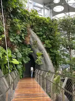 Next, hit up the Cloud Corridor and BAM—you’re surrounded by flower power! Huge flower columns loaded with Phalaenopsis orchids stretch high above, with misty palms 🌴 below setting the vibe. Sneak around the “seating” and you’ll catch stunning butterfly specimens 🦋—fun surprise for all you curious explorers!