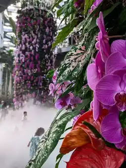 3. Hall 3 · Cloud Mist Canyon (Sky Garden): Hanging flower columns + timed mist create a fairyland, the giant waterfall is taller than Hall 2, a must-visit children’s water play area for families