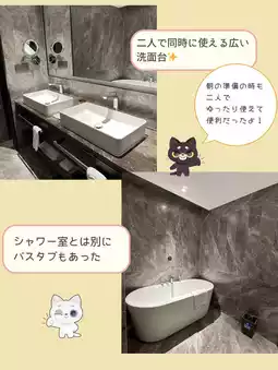 The room was conveniently equipped with two sinks, a bathtub, and a separate private shower room, and the toilet with a bidet function, among other small details, were also very comfortable!