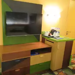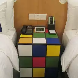 The hotel is surrounded by color, the rooms are modeled after the movie Andy Andy room, blue and white cloud wallpaper, like toy furniture, can really go crazy photo.