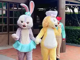 There will be performances at the clock tower every hour. Basically, the first show starts at about 10:00, and the subsequent 11:00, 13:00, and 14:00 are all Yes (check the app for details, it will be different every day) you can see Boss Mi and Duffy and his friends. The best viewing position is the decorative green area facing the clock tower. Then the kids will go up and down the stairs on the left side of the clock tower to the performance location (the passage next to the inventory cabinet, where the Sweetheart House queues up). If you want to see the kids up close, you can squat here. When squatting, be careful not to touch the kids or block the way.