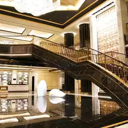 As soon as you enter the hotel and pass the lobby, you can clearly feel the luxurious atmosphere. The crystal chandeliers from the Czech Republic, marble materials, glass, and metals imported from Italy are designed exactly like the layout of a luxury brand store.