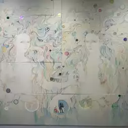 This year, blonde girls have become the main subject of Deng's creations. In addition, the size of the paintings has become larger, and some have even caught up with murals. Deng's paintings still win with details, with several light and wonderful stories juxtaposed together to form a graceful picture scroll.