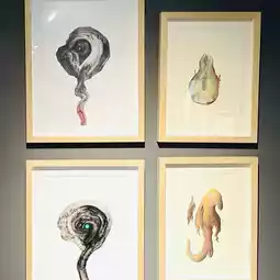 The themes and images in his paintings are often taken from mythical beasts and spirits in Chinese mythology and legends, trying to view the world from their perspectives, providing a different observation and understanding of the world from human perspectives.