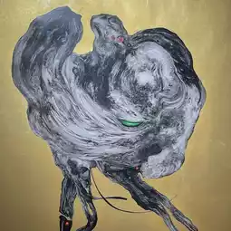 He is good at using "gold foil and ink" as painting materials. I like his "Untitled", which can be a strange beast or a wooden sculpture from different angles.