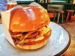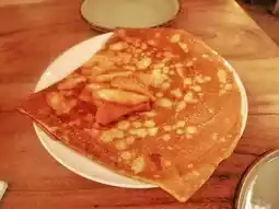 The menu features several types of sweet and salty crepes, sandwiches and burgers, and few tasty appetizers to share. 🥞🍔