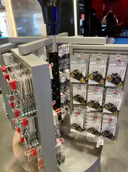 At Shanghai Disneyland's Tron Goods Shop, you can find a variety of products themed around the cyber world of the movie 'Tron.'
