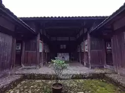 Songyin Hall and Zhongxing Hall are not far apart, separated only by a small square. Compared to Songyin Hall, Zhongxing Hall, built in the 10th year of the Jiaqing reign (1805), is slightly more spacious. Zhongxing Hall faces east and sits facing west, built in the Hakka walled house style, with 9 bays wide and 6 bays deep, covering a total area of 1,698 square meters and a building area of 1,186 square meters. The entire building has 3 main halls, 6 smaller halls, 9 courtyards, and 43 rooms. In the courtyard stands a 6-meter-high stone flagpole erected in the 21st year of Jiaqing (1816) to honor Liao Zhanchun, a tribute student who was awarded the title of university student. Many meetings of the 4th Red Army, such as joint meetings of party representatives at all levels, soldiers’ representative meetings, local cadre representative meetings, and women’s representative meetings, were held here.
