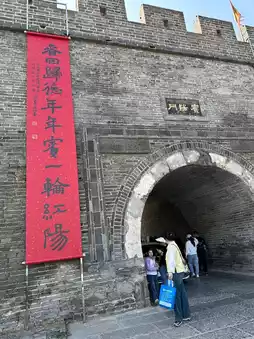 🏯 The architectural style of the ancient city is unique. It is the only large-scale ancient city site in the world that integrates the Bagua City, the Water City, and the City on City. The outer circle and inner square layout is like an ancient copper coin, symbolizing the round sky and square earth. The city wall is tall and majestic, with a circumference of 4.35 km, a width of 10 m, a top width of 6.66 m, and a height of 6.66 m. The city gates are arch-shaped, with the east gate called Binyang, the west gate called Dieze, the south gate called Gongyang, and the north gate called Gongchen. All four gates have barbicans, and the design of the twisted city gates is unique, forming a unique landscape of "four gates and eight openings."