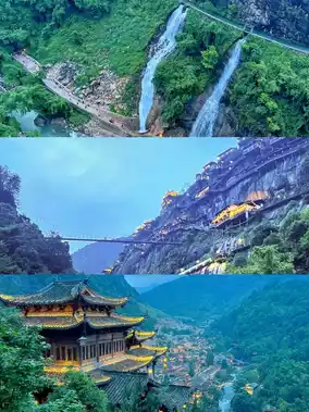 📝Wangxian Valley, with an investment of 4.6 billion CNY, spans 6.1 square kilometers. Blending natural landscapes and cultural elements, the Ganbei-style architecture along the canyon exudes rustic charm and is a 4A-rated scenic area.