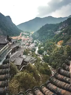 and ancient buildings, blended together perfectly. Highlights include Longfeng Waterfall, a large waterfall about 100 meters high, Qingcheng Cliff, a steep limestone cliff with beautiful scenery, and Hanging Village, an ancient village located on the edge of a cliff.