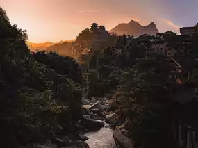 It has beautiful scenery, consisting of mountains, trees, waterfalls, streams