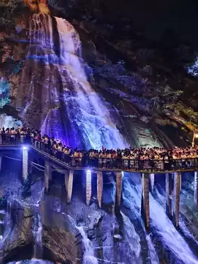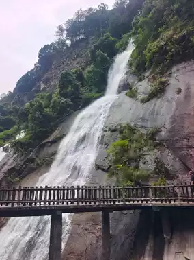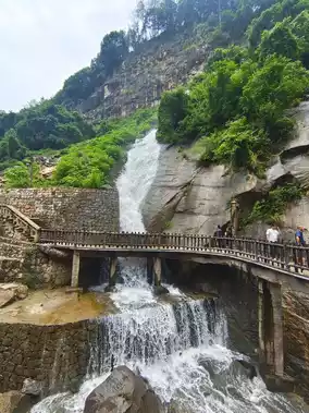 The valley's mountains and waters respond to each other, with waterfalls cascading down like silk ribbons💦