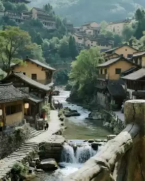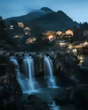 Wangxian Valley is hidden deep in the Lingshan Mountains. The moment you step in, it feels like opening the loading screen of a Xianxia game🌄. A hundred-meter waterfall cascades down the cliff like the Milky Way falling from the heavens, and the mist in the sunlight refracts a full double rainbow🌈. The cliffside ancient houses built during the Qianlong era hang on the steep cliffs, and when shrouded in mist, they look exactly like a celestial office!