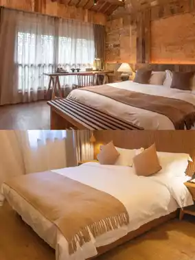 The room features natural wood and Zen design, with a private viewing terrace. Brew a cup of tea and sit here daydreaming—your worries will simply vanish~