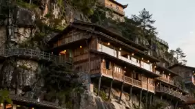 Wooden houses built on the cliff, arranged with a special charm. Early in the morning, stand on the viewing platform to take a panoramic photo; when the mist swirls, it feels like an immortal will fly by on a sword any second—your friends on social media will be amazed! For an immersive experience, stay here; open your window to valley views and the xianxia vibe is at its peak.