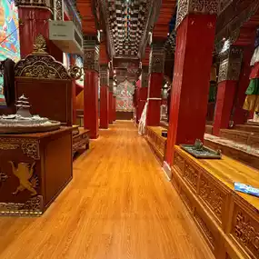 The monastery consists of two Tibetan monasteries: Zhacang and Jikang. The copper roof is covered with gold, giving the monastery a Tibetan feel. There are 108 stone pillars, which are an auspicious number in Buddhism. It can accommodate more than 1,600 monks for chanting. There are 146 steps leading up to the main hall, which is decorated with murals depicting stories and legends of the Buddha. The temple is also filled with many valuable items, including large Chinese Buddha statues, golden lanterns, silver incense burners, Tibetan prayers, and many more. Another interesting point is Lamuyangcuo Lake in front of the temple, which is the best place to take pictures of the Songzanlin Monastery reflecting on the water.