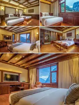 Imagine waking up on a plateau thousands of meters above sea level, opening the curtains to a magnificent view of snow-capped mountains. In that moment, it feels like the whole world is silent. This hotel is set in such an environment, with every room offering a view. The rooms with large balconies not only offer a view of the golden mountains at sunrise, but also a starry sky at night. ✨ It's truly healing!