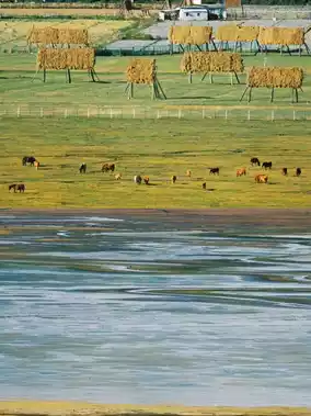 ③🚗 @Self-driving/charter: Go around the lake, stop and play/take photos whenever you see something nice. There are snow-capped mountains and grasslands, with blue skies and white clouds, it's really beautiful!