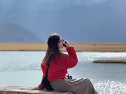 There are alpacas, dogs, ducks, horses, goats and more for us to play with and take pictures with. There are many people wearing Tibetan clothing to take pictures with. They are so cute. The atmosphere is very chill.