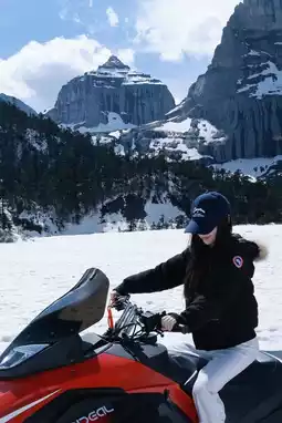 The natural pagoda snow mountain stands at 4,200 meters above sea level. The mountain is majestic, prayer flags flutter in the wind, and the snow is deep. Here, you can also enjoy skiing and snowmobiling.