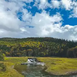 Pudacuo National Park, located in Shangri-La, Yunnan Province, is China's first national park to meet international conservation standards. Spanning 1,300 square kilometers, the park is part of the UNESCO-listed "Three Parallel Rivers" region. It features diverse landscapes, including alpine meadows, wetlands, forests, and pristine lakes like Shudu Lake and Bita Lake. Militang Pasture adds to its charm with grazing yaks and vibrant wildflowers.
