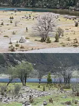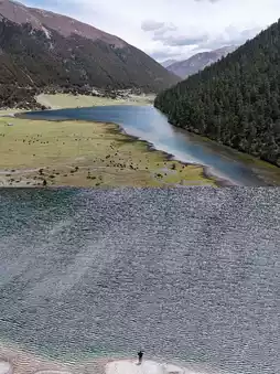 ✔️Section 1: East shore forest trail—gentle slopes through fir forests with streams and grazing yaks/horses.