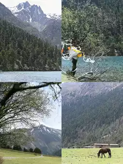 This glacial erosion lake is surrounded by primeval forests, with snow-capped mountains (Yading's sacred peaks: Chenrezig, Jambeyang, and Chanadorje) reflected on its surface. Alpine meadows abound, while May-June offers spectacular rhododendron blooms.
