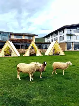 In the morning, goats would come right up to the cabin door, acting all familiar—munching on grass while nudging you affectionately. During breakfast, we even saw the Hong Kong owner shooing mischievous goats out of the yard, their curious peeking making them unbearably cute 😆.