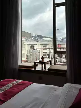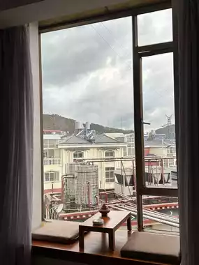 The rooms are simply decorated, combining Chinese-Tibetan style with resort-style comfort. Natural wooden furniture, window seats, and a small tea table have become our favorite corner. 🍂