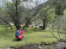 We woke up to a brilliantly sunny morning—the B&B owner said it might be the best weather Shangri-La had seen in weeks. In the morning, we visited Pudacuo National Park. The park has three main areas: Youyou Trail (hiking only), Shudu Lake (with options like off-road vehicles, boats, mountain bikes, or hiking), and Bitahai (an out-and-back walking trail). The Youyou Trail was my favorite part of the experience. We wandered through pristine forests and along small streams, chatting, taking photos, and stopping as we pleased. We could admire the blooming alpine rhododendrons up close, search for tiny mushrooms hidden at the roots of trees (a real test of eyesight!), stack small mani stones by the stream, or watch yaks and pigs grazing peacefully in the distance. During this hike, my soul quickly rehydrated from the exhaustion and monotony of daily life—we had so much fun in nature that I even fantasized about running away to live as a wildling. Shudu Lake and Bitahai featured more structured wooden boardwalks, with playful squirrels darting around. We got so immersed in Pudacuo that we far exceeded our planned 3–4 hours (to explore comfortably, allocate at least 8 hours). By the time we left, dusk was falling as we hurried toward Deqen.