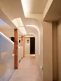 The boutique hotel combines elegant modern style with refined wabi-sabi elements, along with amenities like elevators, a gym, and meeting rooms, enriching the stay experience.