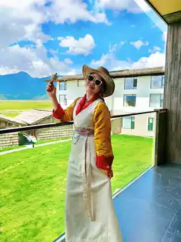 When you come to Shangri-La, you definitely have to experience Tibetan clothing. The hotel provides various styles of Tibetan costumes for free, which you can wear to the grassland for photos.