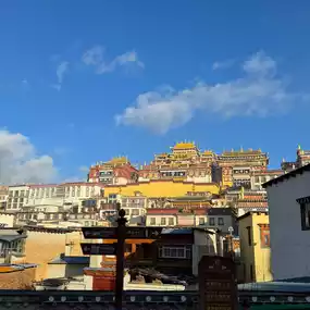 However, if you're able to climb, it's worth it. The 75-yuan ticket includes both the shuttle bus and monastery entrance fee. The architecture at the top is beautiful, Tibetan-style, and makes for stunning photos.