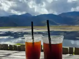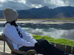 Today's itinerary wasn't tight. We mainly went to one place: Songzanlin Monastery, or Little Potala Temple. It's a replica of the Potala Palace in Tibet. It's a beautiful temple on a mountain. Unfortunately, they don't allow photography inside the temple. The Buddha statues are truly magnificent, and you can only take photos outside. The Chinese sisters here are all dressed in traditional makeup and beautiful costumes. At first, I talked to Noon about wearing traditional costumes when I arrived, but when I arrived... I was too lazy. 😄😄 After the temple, I didn't know where to go, so I went to a coffee shop with a beautiful view. It's located in the Shangri-La Ten Miles Snow Hotel. Outsiders must order one drink per person. The view is truly beautiful, and the coffee is expensive and not delicious. 😄 (The Americano was dark roasted, ordinary, and had no aroma or flavor.) It cost about 265 baht per cup. I hadn't finished it yet, so I walked over to take photos. When I returned to my table... oh, I'd already put my cup away, even though my belongings were still on the table. It was very windy here. We sat and enjoyed the breeze for a while before leaving. I was still thinking, Will I get sick with round eyes like this? In the evening, Noon couldn't survive. Her face and eyes were heavy and her body was hot, so she gave me paracetamol and fell asleep quickly...end of day 4. Oh...for dinner, I wanted to eat yak meat hot pot, but I went to the wrong restaurant. My life changed...it was the most unpalatable meal. 😅