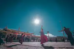 Every year on the 29th day of the 11th month of the Tibetan calendar, local residents from Shanghai-La are gathering at the Songzanlin Lamasery to celebrate bumper harvests and pray for receiving a blessing in the next year. All the local Tibetans will wear the traditional and colorful clothes to watch the religious Cham dances.