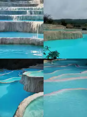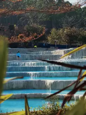 💚**Terraced Springs**: The terraced springs within the scenic area are modeled after Pamukkale, offering a romantic Türkiye blue-and-white scene without leaving the country. It's a perfect spot for photos, especially on working days when you can enjoy the vast landscape with fewer crowds.