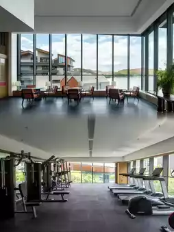 The hotel's fitness center is fantastic. Not only is it fully equipped, but it also offers personal trainer services! If you bring children along, they can enjoy a play area specially designed for kids!