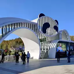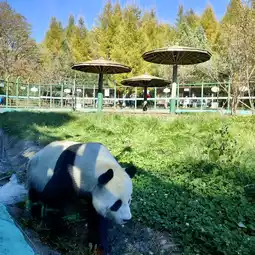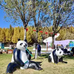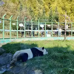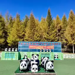 🐼 It's really beautiful and enjoyable. The atmosphere of the giant panda cage looks good. The backdrop is a pine forest and snowy mountains.